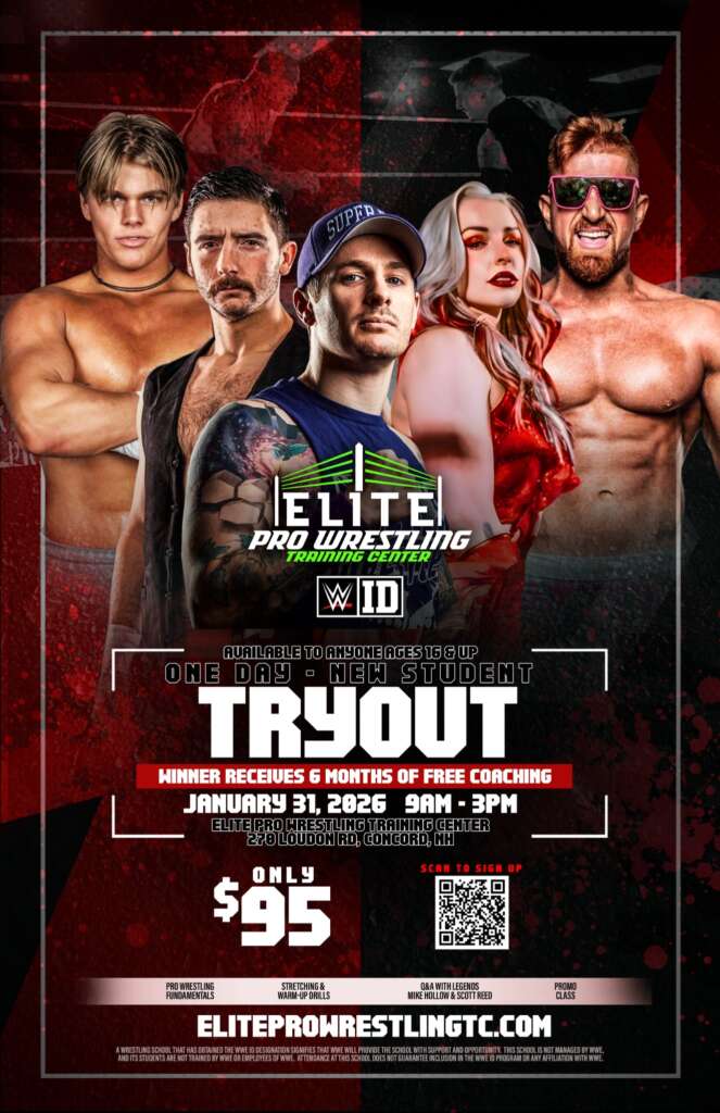 Welcome to the Elite Pro Wrestling Training Center, an official WWE ID developmental school for the Northeast region. Our Professional wrestling school is nestled in the heart of Concord, NH, our state-of-the-art training facility spans an impressive 6,000 square feet. At the helm of Elite are head trainers Mike Hollow and Scott Reed. Boasting a collective 50 years of invaluable experience in the world of professional wrestling! These seasoned professionals have contributed to the development of wrestling luminaries seen on screens worldwide. Having worked with renowned organizations such as EVOLVE, Dragon Gate Japan, WWE, and various promotions across the United States!