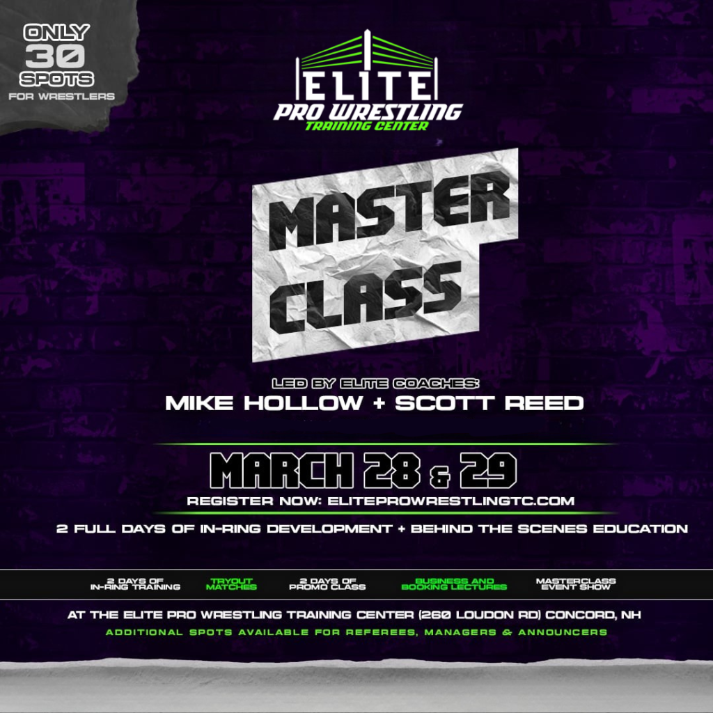 Welcome to the Elite Pro Wrestling Training Center, a developmental school for the Northeast region. Our Professional wrestling school is nestled in the heart of Concord, NH, our state-of-the-art training facility spans an impressive 6,000 square feet. At the helm of Elite are head trainers Mike Hollow and Scott Reed. Boasting a collective 50 years of invaluable experience in the world of professional wrestling! These seasoned professionals have contributed to the development of wrestling luminaries seen on screens worldwide. Having worked with renowned organizations such as EVOLVE, Dragon Gate Japan, WWE, and various promotions across the United States!
